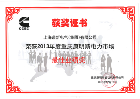 上海鼎新电气(集团)有限公司在2013年荣获重庆康明斯最佳业绩奖。